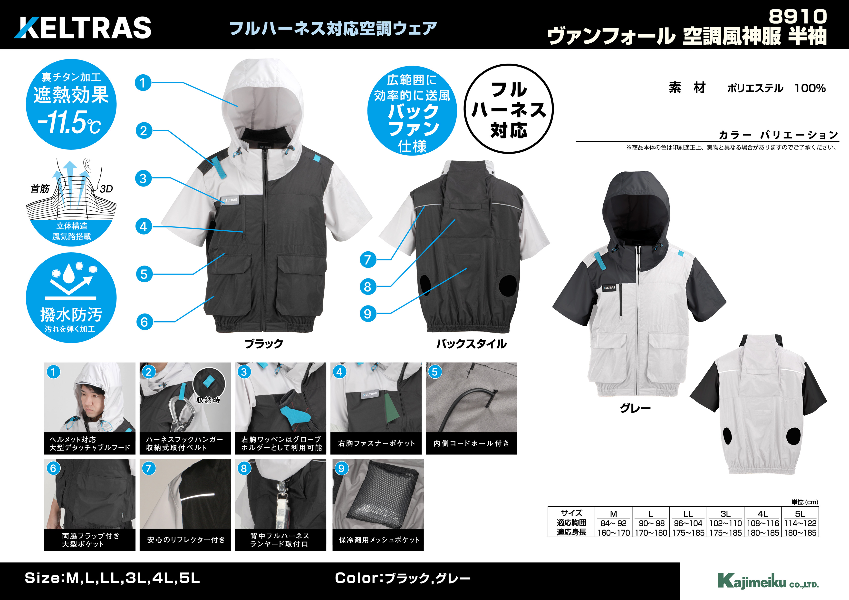 「8910 ヴァンフォール空調風神服 半袖」