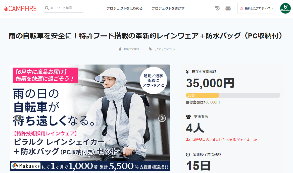 「CAMPFIRE」期間限定でレインシェイカー販売